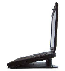 The podium has stackable risers that let you adjust the keyboard incline by 1/2" increments, you can raise or lower the angle quite easily by just snapping them together. By experimenting a bit, you can find a comfort zone that will make it easier on you to do your work. And there's nothing to attach or fuss with, you simply plop any laptop on top of the CoolPad. That's it!