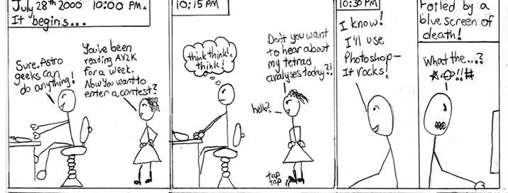 1. Me : astro grad student->means I'm a geek -> there's the geek in AY2K, drawn by Nitrozac