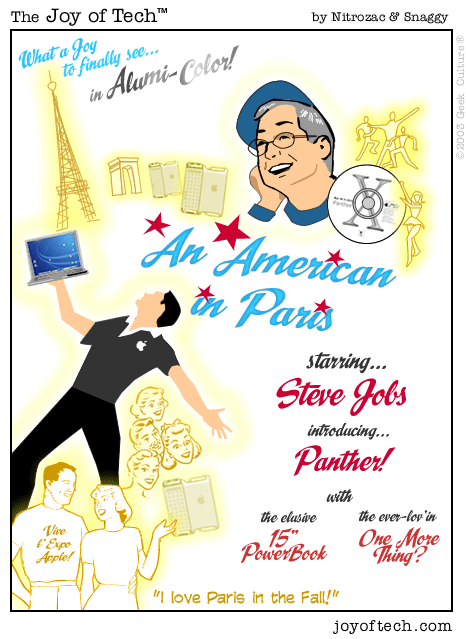 If you're using a Mac and a newer version of Explorer, here's a neat trick courtesy of MacMerc. Drag the above little image to the top tool bar of your browser, it should "stick" afterwards. Now you have a graphical link to the Joy of Tech, one that will update everytime a new comic is uploaded. (You may have to refresh the image manually if it's in your cache.) If you need to delete or move it it, just control button/click and hold, then select delete, or just Command/drag it to the trash.