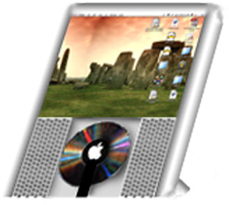 The styling is similar to the iPod, and the new iBook. It is white on the front, with a crome back. The CD drive sits on the front of the machine (a la 20th Ann. Mac), but is fronted with clear glass. The glass is held on with an arm bearing the Apple logo.