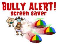 | Bully Alert! Inspired by the epic tale of determination and survival that geeks everywhere face daily, we created this goofy little screen saver for Mac or Windows. And you can download it for free! An alarm is sounded... a Bully Attack! Horrendously menacing bully-like cartoon creatures appear from nowhere. Your desktop is doomed! But suddenly... salvation! The bully creatures are destroyed by incoming flying beanies! Yippy! The beanies soar across your screen, at times leaving cool colored trails, but be warned, more bullies will no doubt return! Bonus: If you're using two monitors, the beanies will float across your expanded virtual desktop... very cool! |