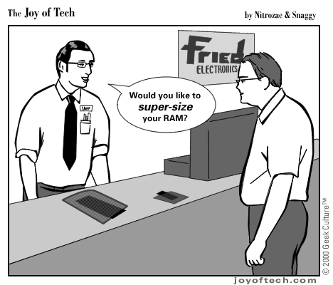 | Welcome to the Joy of Tech... our new daily comic, illustrated by Nitrozac and written by Nitrozac and Snaggy. It's a little bit simpler in style than After Y2K, and will be more topical, and we hope you'll enjoy it! |