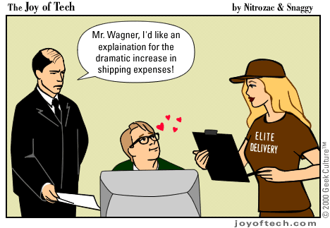 Welcome to the Joy of Tech... illustrated by Nitrozac and written by Nitrozac and Snaggy. It's a little bit simpler in style than our other comic After Y2K, and a little more topical. We hope you enJoy!