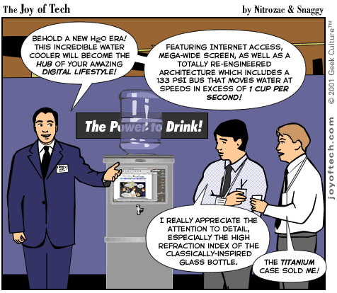 | Welcome to the Joy of Tech... by Nitrozac and Snaggy. It's a little bit simpler in style than our other comic After Y2K, and a little more topical. We hope you enJoy! |