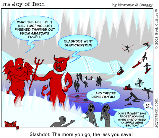 ![]() Mac Genius t-shirts! Posters! ![]() The TTB t-shirt! NOW IN STOCK! ![]() Beanies! Relevancy Link: Announcing Slashdot Subscriptions |